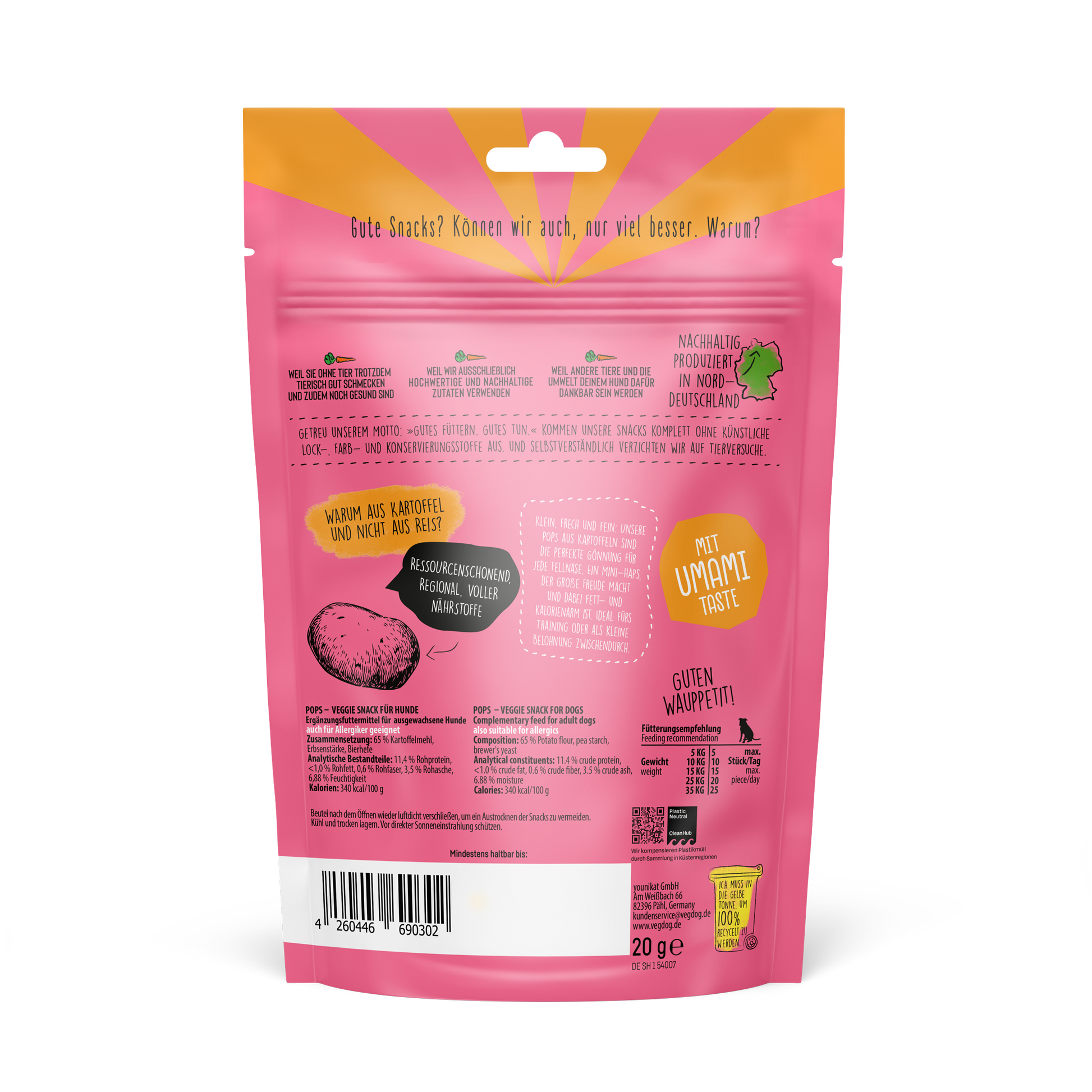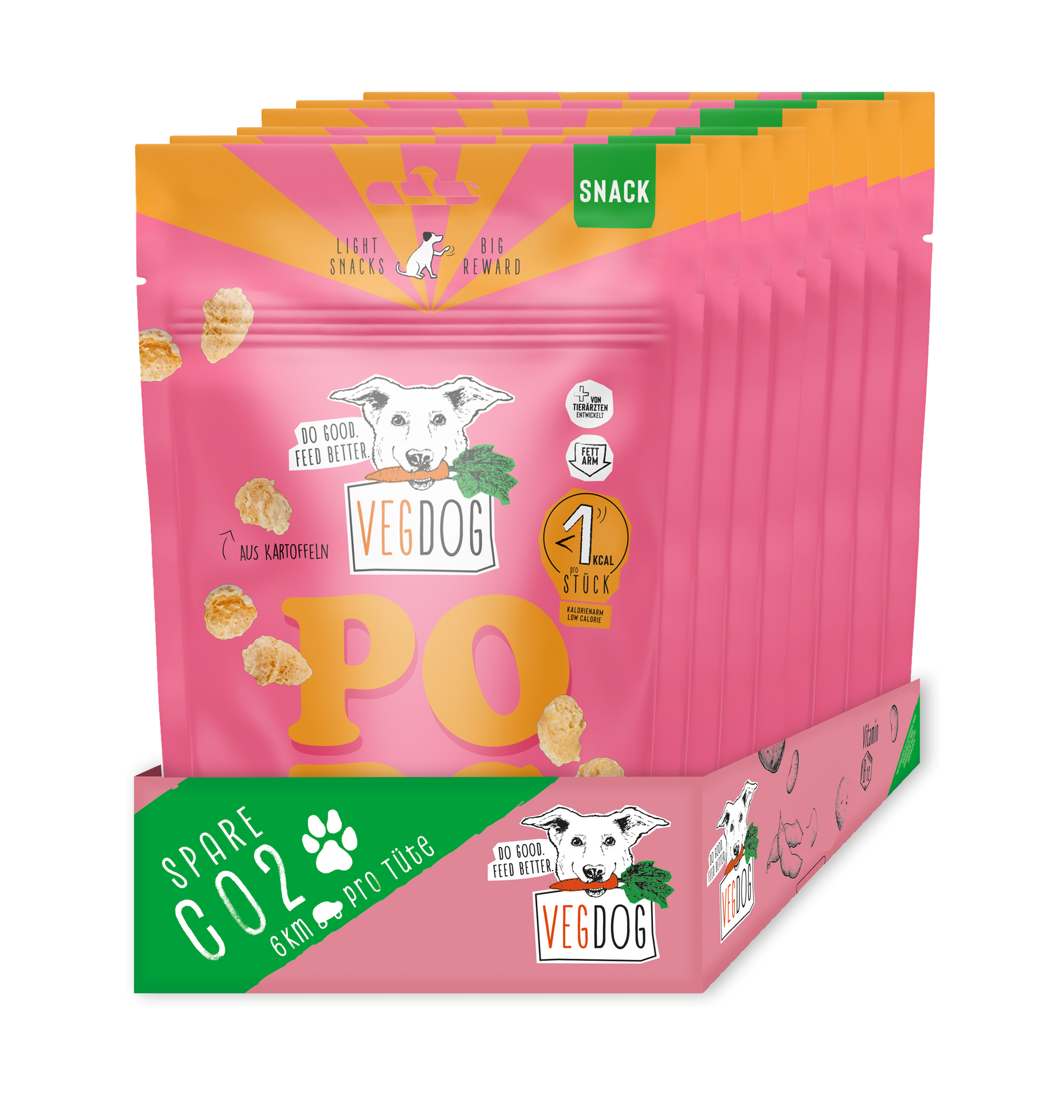 Surprenez votre chien avec ces délicieuses friandises soufflées deVegdog. Les Pops de Vegdog sont des friandises pour chien fabriquées en Allemagne. Elles sont parfaites pour régaler votre Poilu :